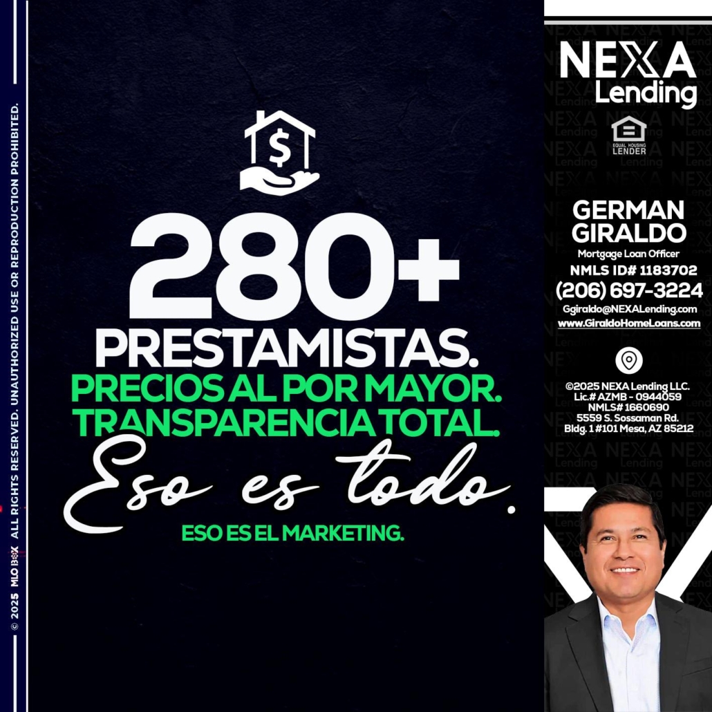 Hi, my name is German Giraldo. I’m a Loan Officer with NEXA Mortgage LLC., offering personalized mortgage solutions, fast customized quotes, great rates and service with integrity.