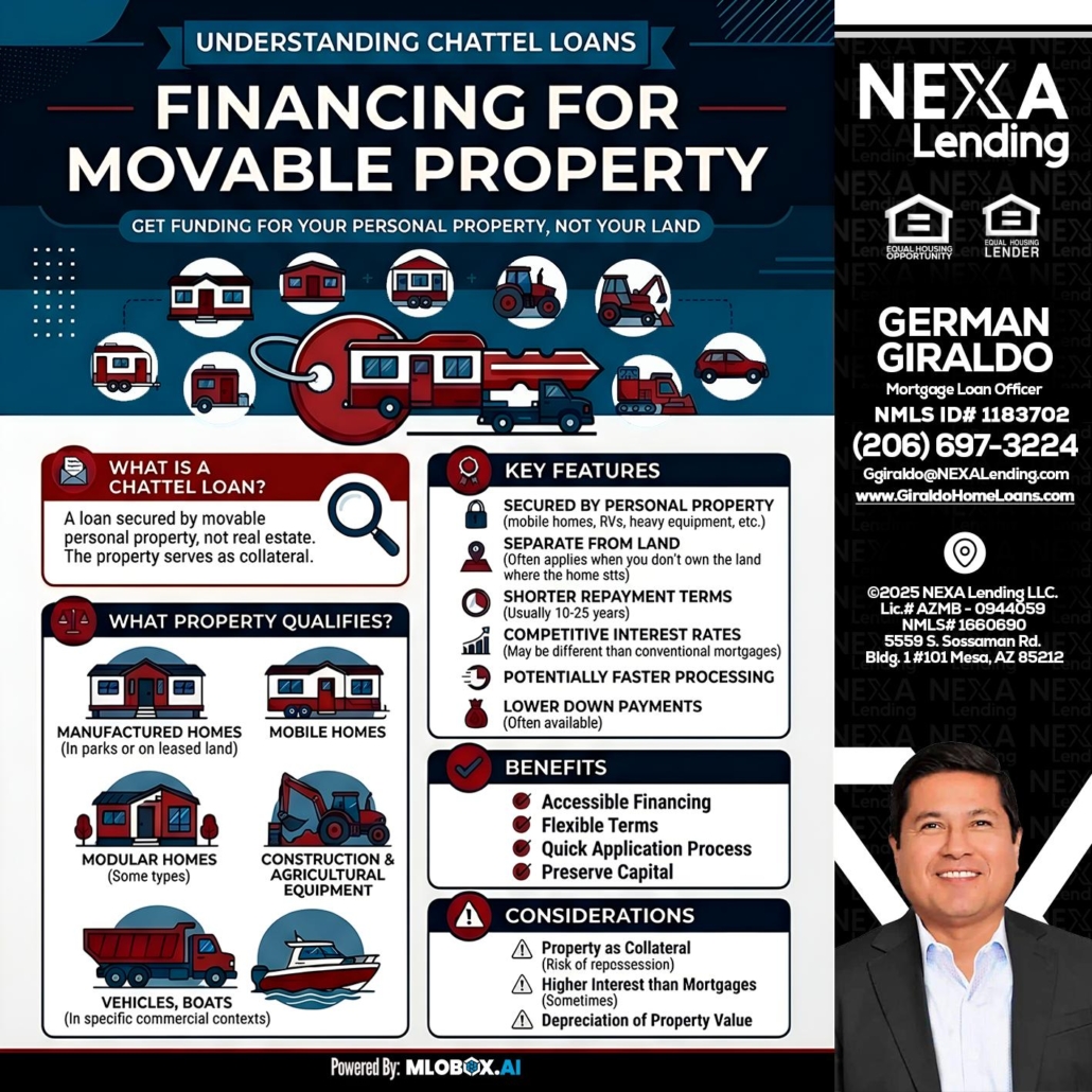 Hi, my name is German Giraldo. I’m a Loan Officer offering personalized mortgage solutions, fast customized quotes, great rates and service with integrity. If you’re interested in learning more about the Chattel loan or any other, just let me know and I’ll walk you through your options.