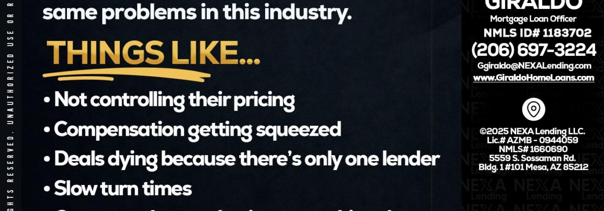 Hi, my name is German Giraldo. I’m a Loan Officer with NEXA Lending LLC., offering personalized mortgage solutions, fast customized quotes, great rates and service with integrity.