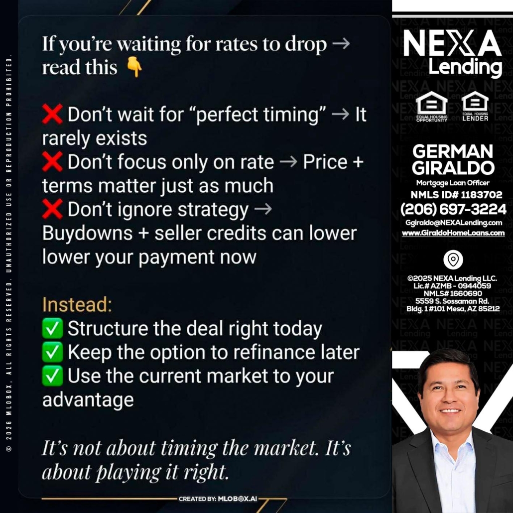 Hi, my name is German Giraldo. I’m a Loan Officer with NEXA Lending LLC., offering personalized mortgage solutions, fast customized quotes, great rates and service with integrity.