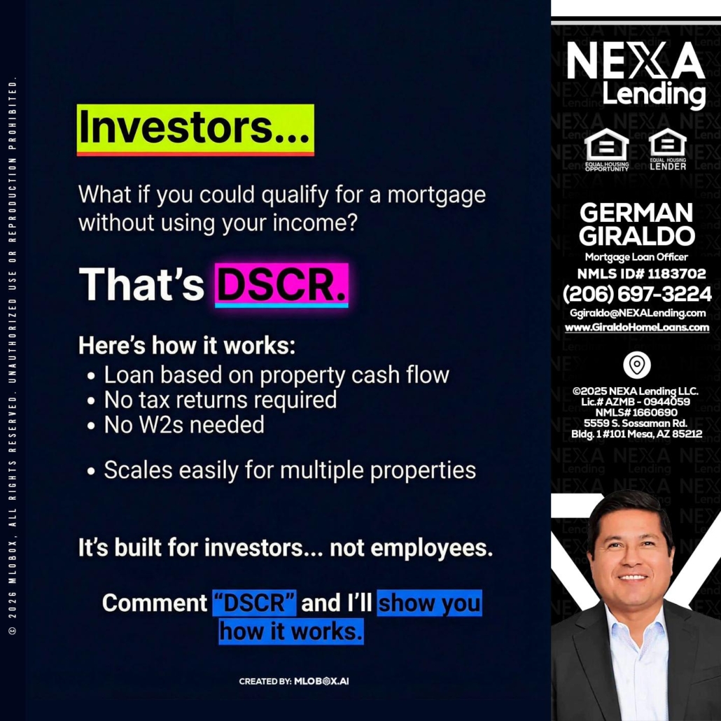 Hi, my name is German Giraldo. I’m a Loan Officer with NEXA Lending LLC., offering personalized mortgage solutions, fast customized quotes, great rates and service with integrity.