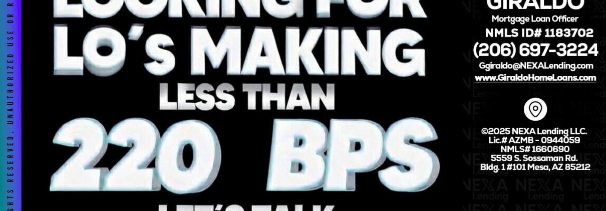 Hi, my name is German Giraldo. I’m a Loan Officer with NEXA Lending LLC., offering personalized mortgage solutions, fast customized quotes, great rates and service with integrity.