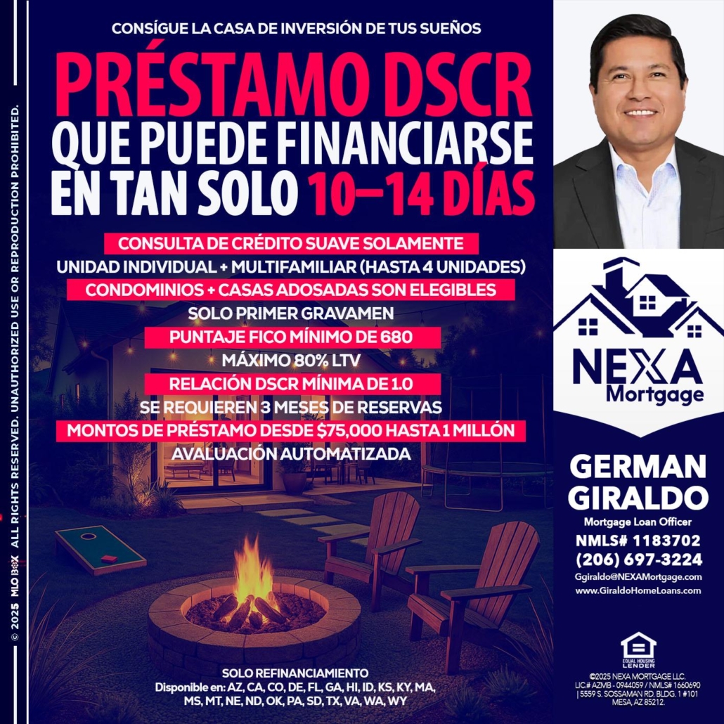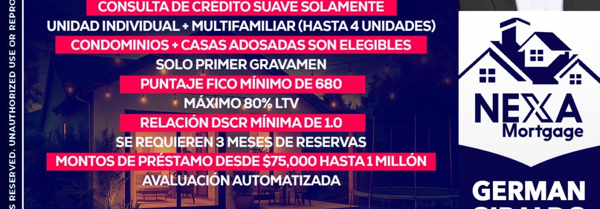 Hi, my name is German Giraldo. I’m a Loan Officer with NEXA Mortgage LLC., offering personalized mortgage solutions, fast customized quotes, great rates and service with integrity.