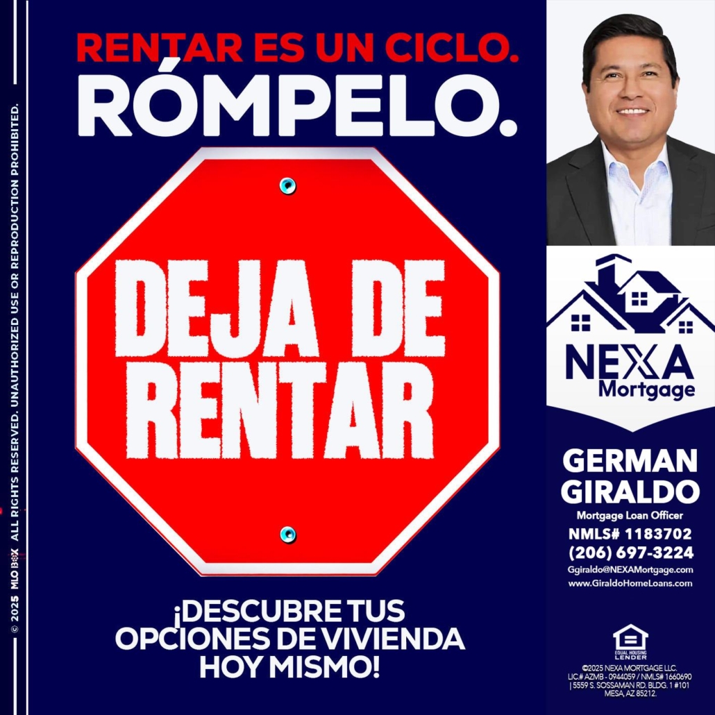 Hi, my name is German Giraldo. I’m a Loan Officer with NEXA Mortgage LLC., offering personalized mortgage solutions, fast customized quotes, great rates and service with integrity.