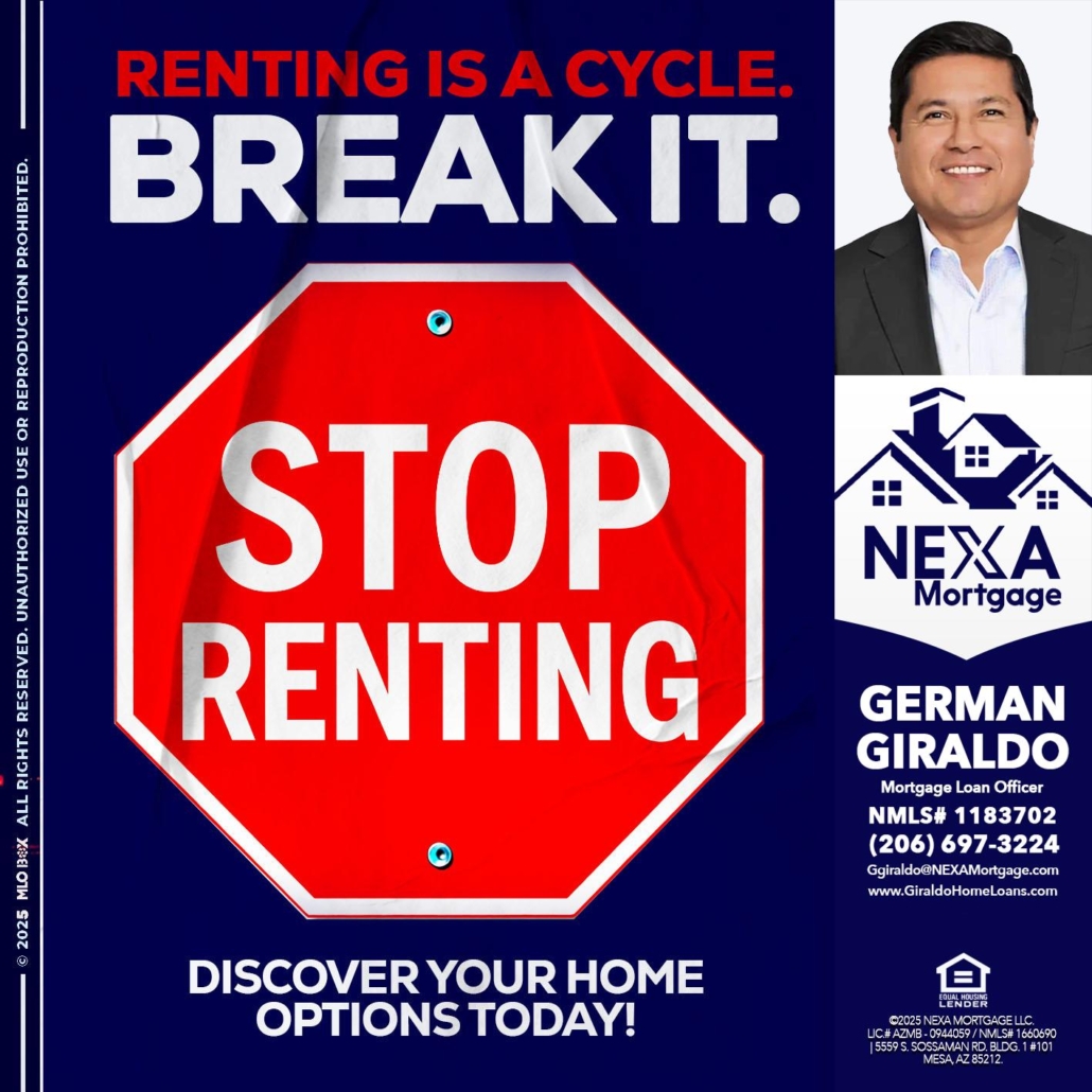 Hi, my name is German Giraldo. I’m a Loan Officer with NEXA Mortgage LLC., offering personalized mortgage solutions, fast customized quotes, great rates and service with integrity.