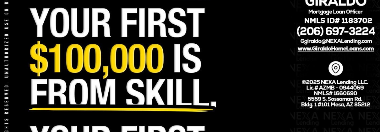 YOUR FIRST $1000 - German Giraldo -Mortgage Loan OfficerHi, my name is German Giraldo. I’m a Loan Officer with NEXA Lending LLC., offering personalized mortgage solutions, fast customized quotes, great rates and service with integrity.